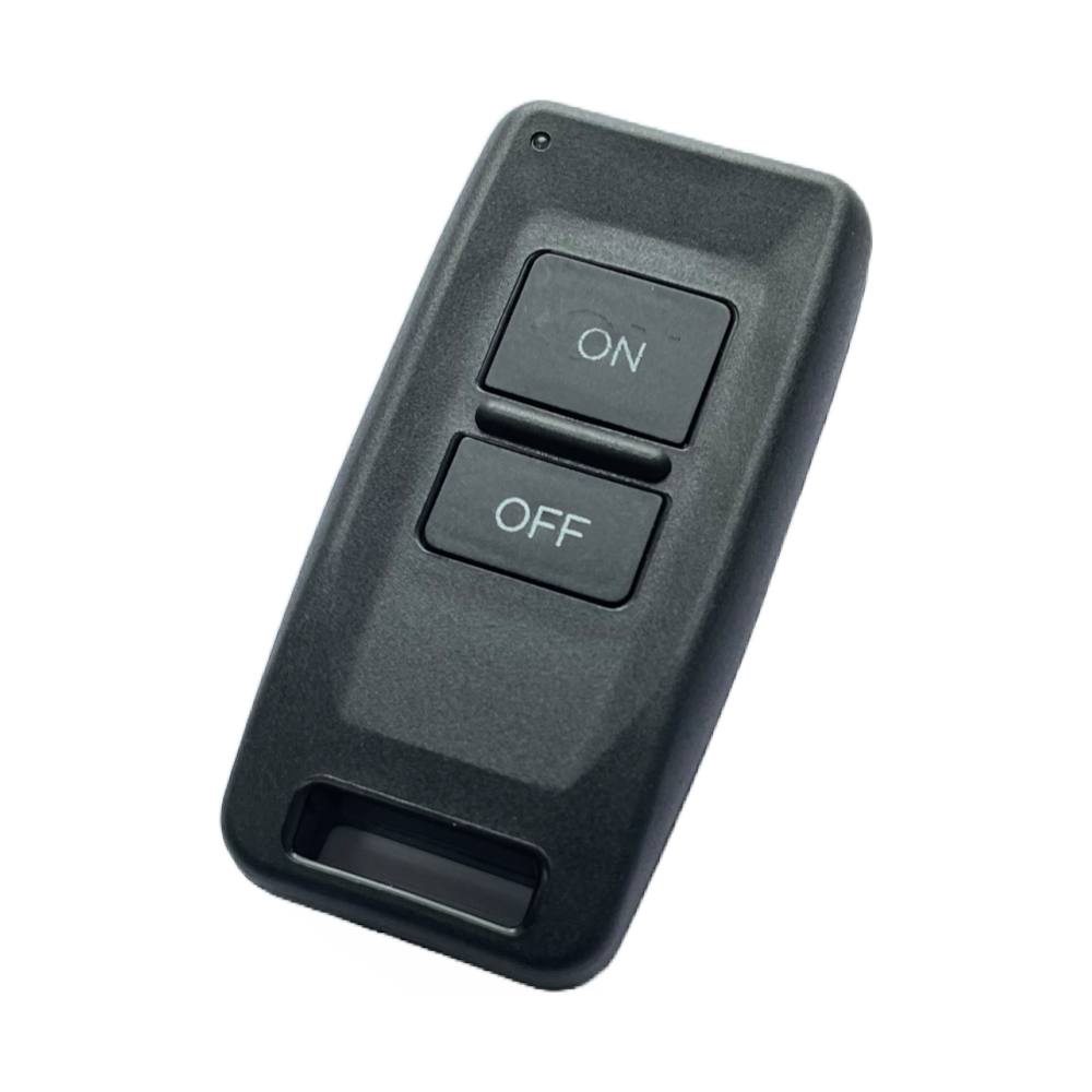 Пульт представляет собой миниатюрное приемопередающее устройство с питанием от 3-х вольтовой батарейки (тип CR2032). На пульте расположены две кнопки управления и светодиодный индикатор.