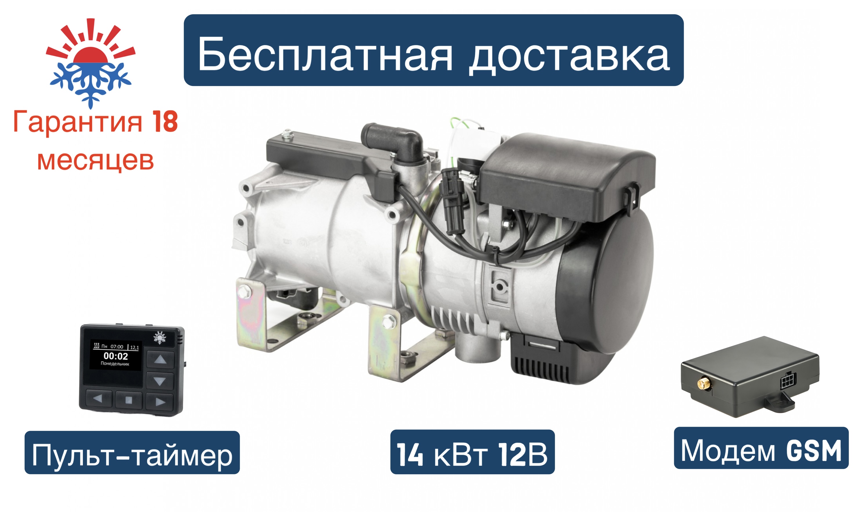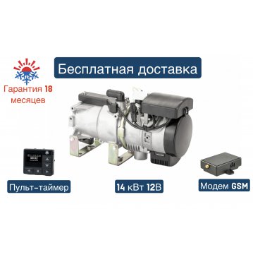 Подогреватель жидкостный предпусковой Теплостар 14ТС-10 МИНИ 12В GP с монтажным комплектом / модем simcom