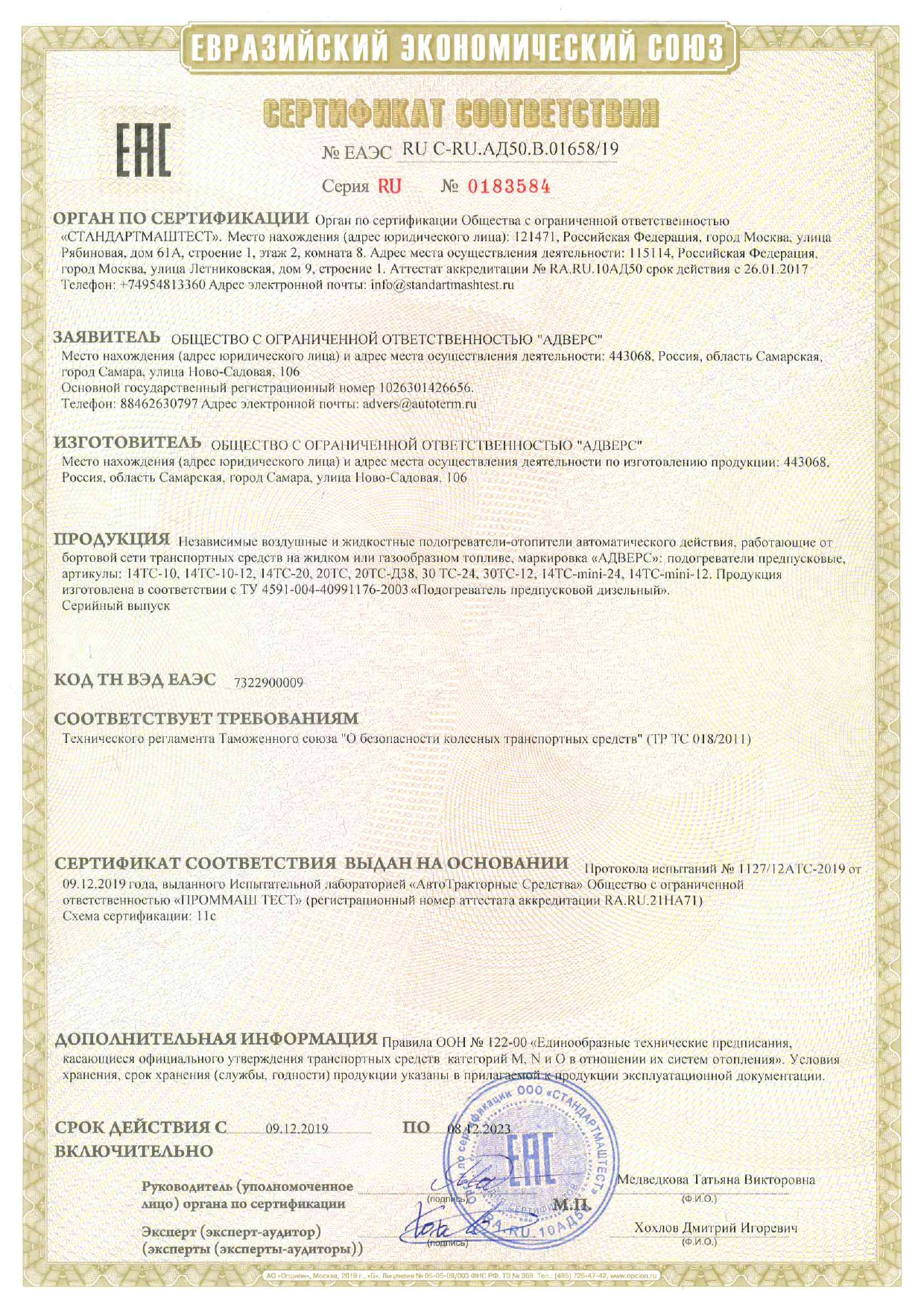 • гарантированный запуск мотора ТС при низкой температуре (до -45°C);