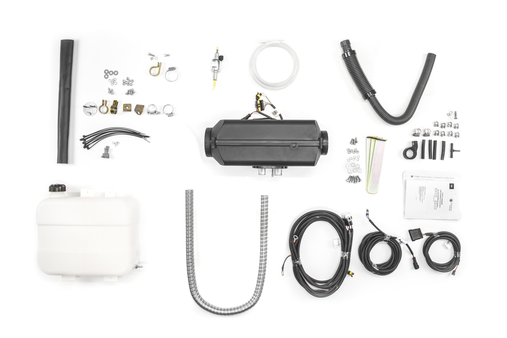 - Монтажные комплекты: отопителя, воздухозаборника, жгутов, топливного бака, топливной системы, выхлопной системы;