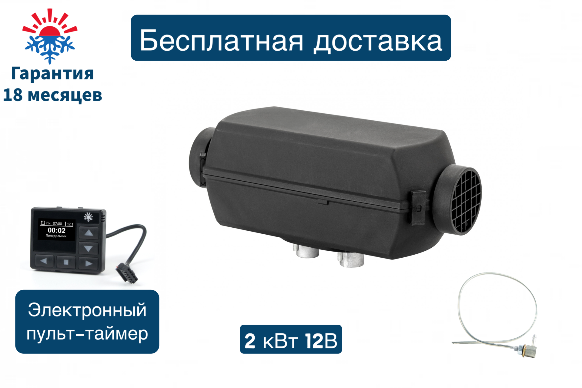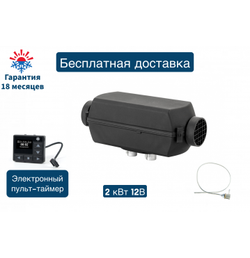 Отопитель воздушный дизельный 2Д-12В-S (2 киловатта) Монтажный комплект с топливозаборником / Электронный пульт